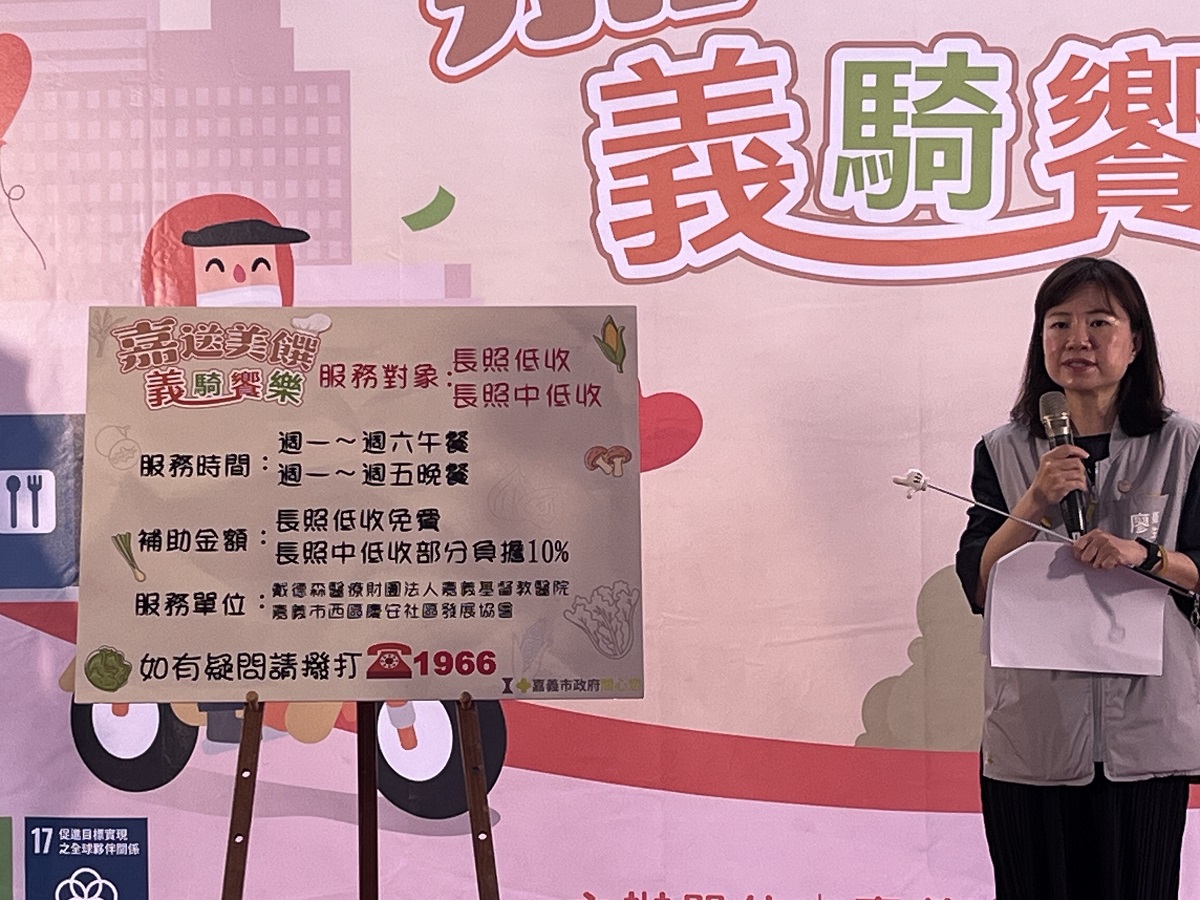 嘉義市截至113年2月底65歲以上人口已達18.46%,略高於全國平均18.43%,嘉義市長照中心於88年起推行營養餐飲,112年獨居失能長輩約計522人,若尚能自行外出長輩,都鼓勵他們到社區據點一起共餐,但失能又獨居無法外出的長輩,則由送餐志工協助送餐,目前本市約有220人使用送餐服務,為讓這些弱勢長輩有熱呼呼飯菜,透過目前約38位熱心、熱血的志工朋友們不畏颳風下雨日曬,把剛煮好的新鮮飯菜趕在吃飯前送達,同時給予關懷問候,確保長輩的平安與溫飽。